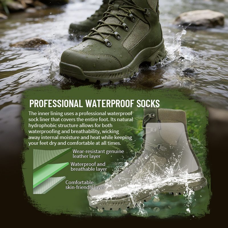 اندرونی استر ایک پیشہ ور واٹر پروف جراب کا استعمال کرتی ہے جو پورے پاؤں کو ڈھانپتی ہے۔ اس کا قدرتی ہائیڈروفوبک ڈھانچہ گرمی اور پسینے سے بچنے کے دوران پانی کو باہر رکھتا ہے — تاکہ آپ کے پاؤں خشک اور آرام دہ رہیں۔